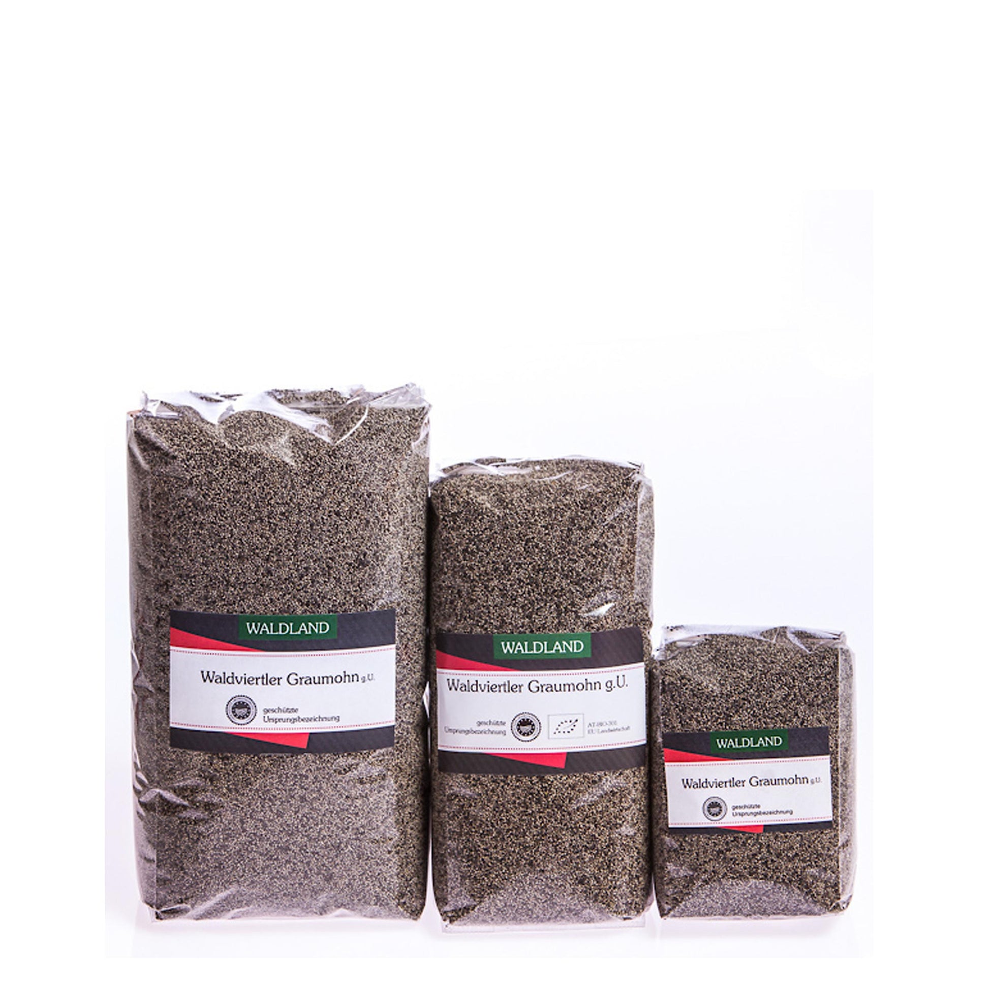 Der Waldvierter Graumohn g.U. ist in 250g, 500g und 1kg erhältlich.